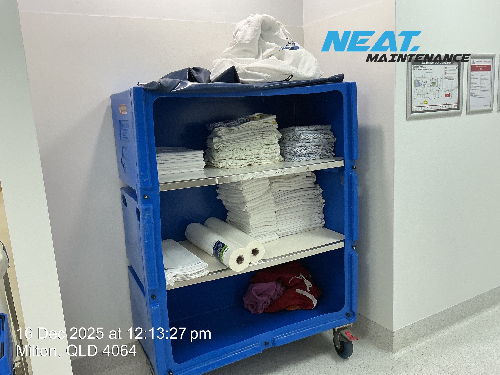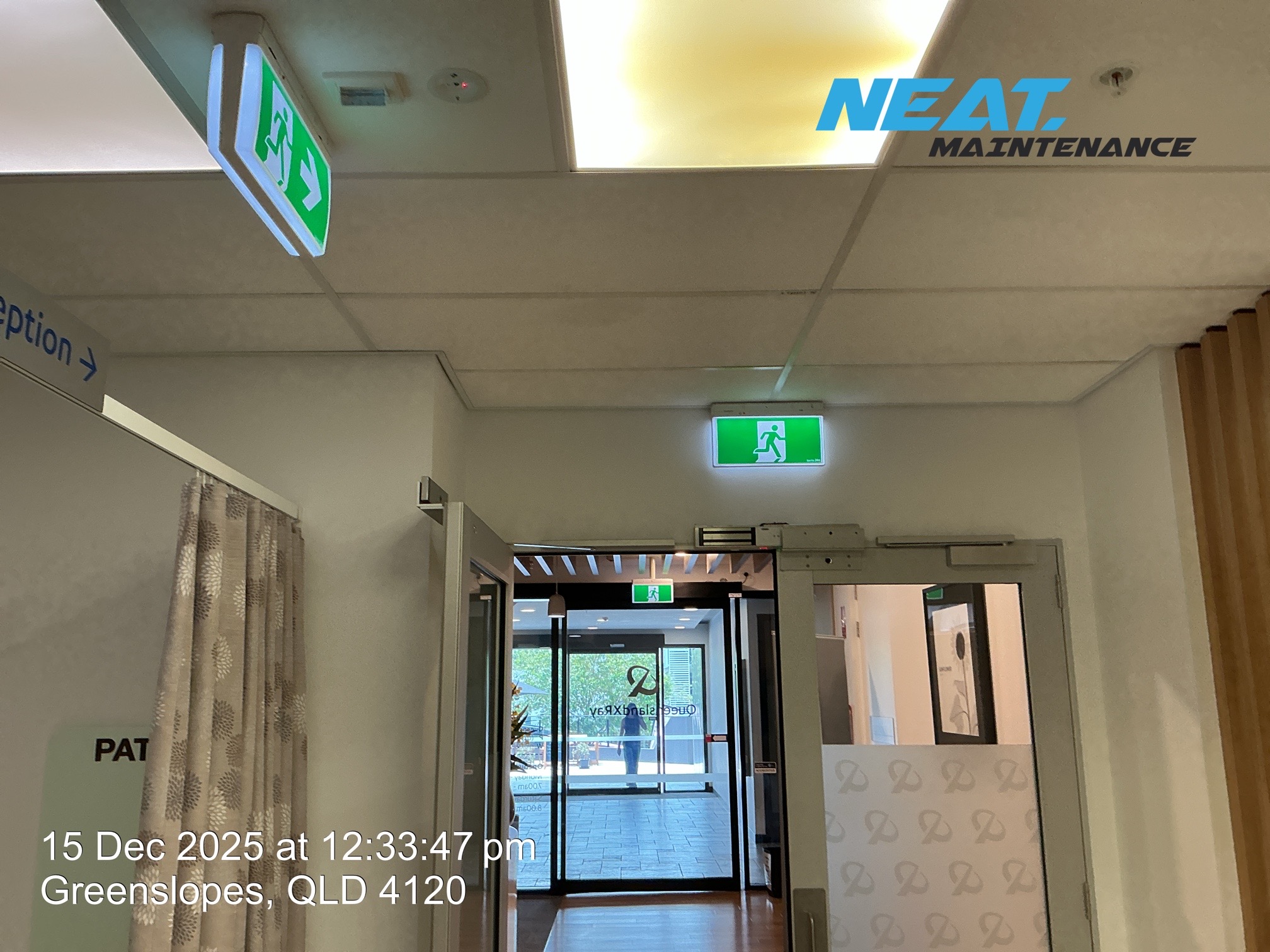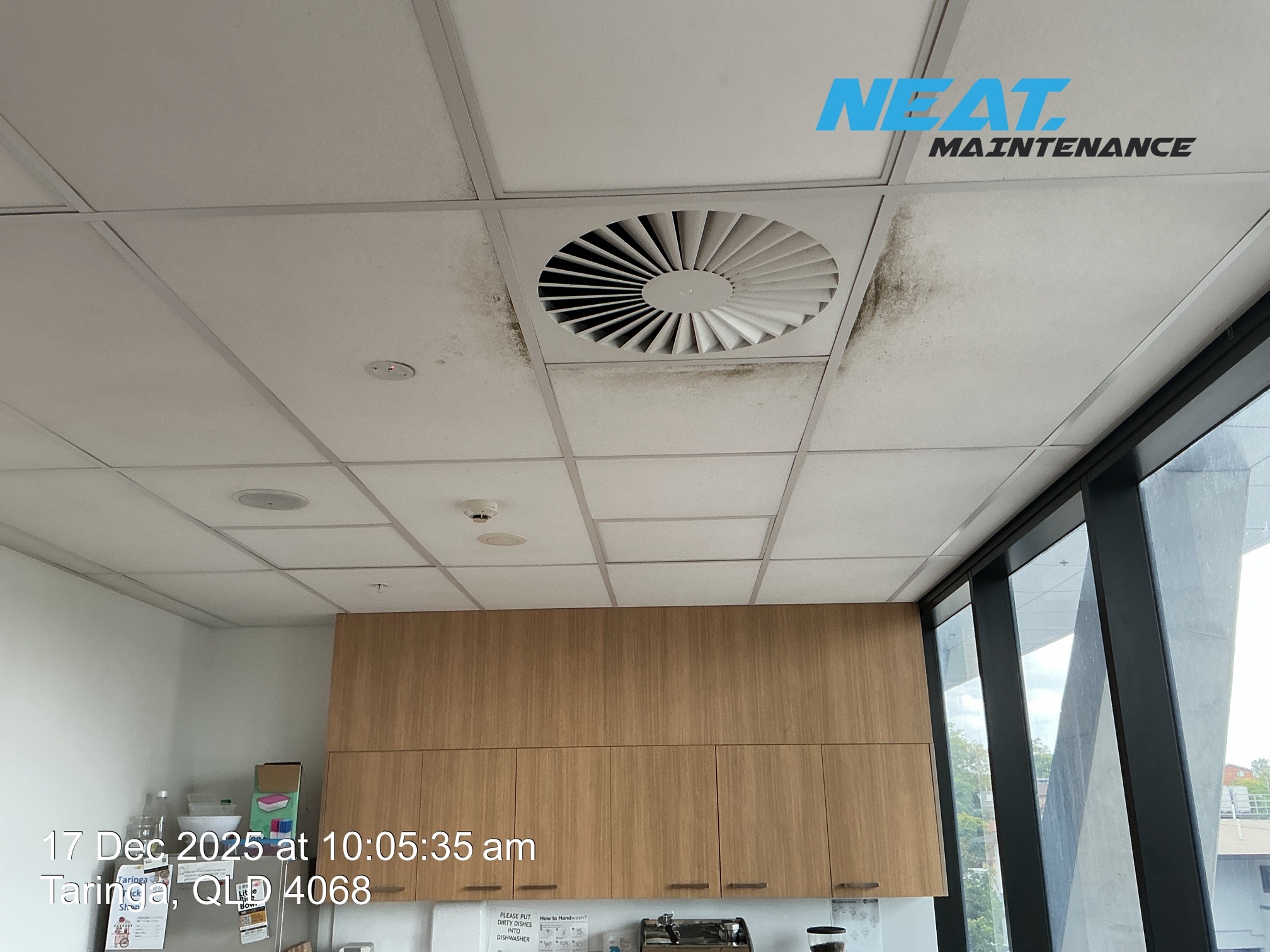 • Teniesha the practice manager showed us some ceiling tiles in lunchroom and above bed and recovery room that she hoped to get replaced as they were very dirty and stained.
