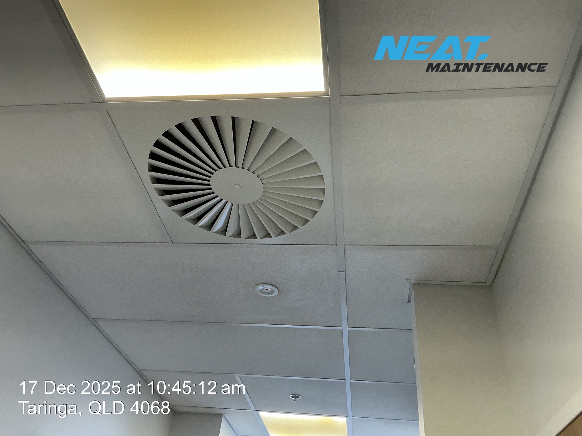 Yellowing lights in corridors. photo also shows more replaced ceiling tiles